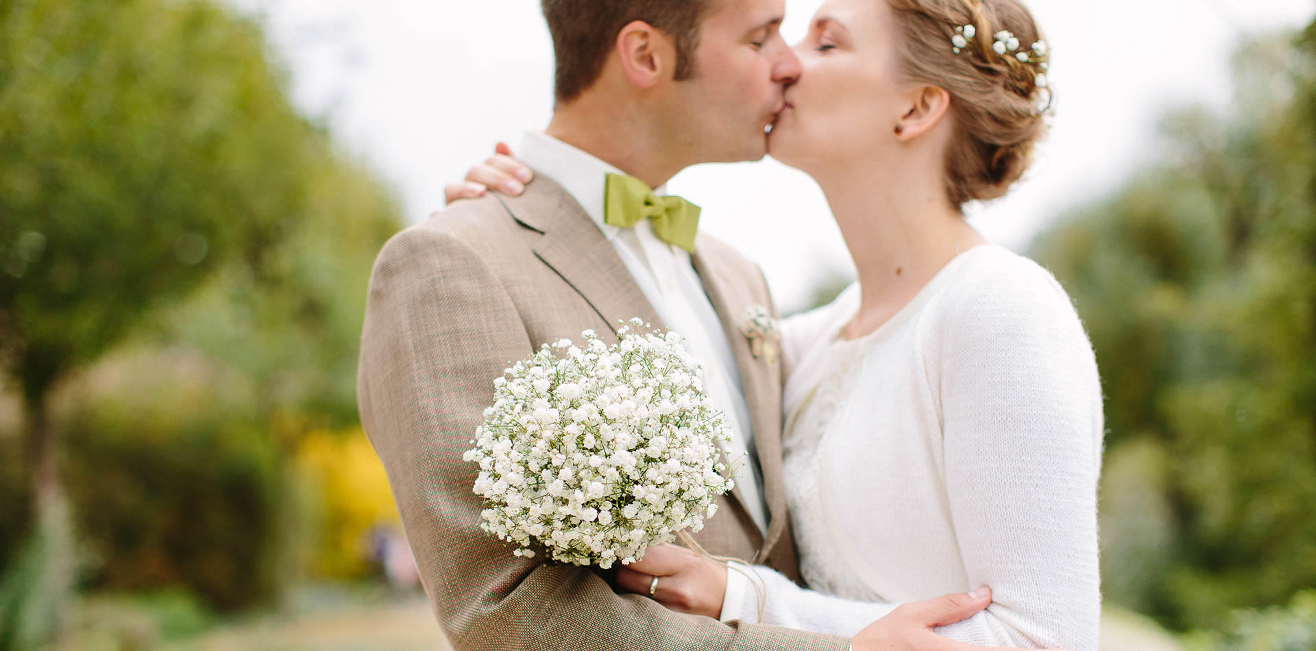 Zu Lucy trägt Nadine unser Seidenband mit der passenden Blüte im grünen Farbton Moss. Bei unserem lieben Partner Jolie Fashion und Braut in Bruchsal hat sie sich für diese schöne Kombination entschieden und auch noch ein ganz besonderes Jäckchen gefunden. Die Mutter der Besitzerin Margarete Krämer-Of macht diese nämlich selbst in Handarbeit – WOW ! Nachdem feststand, dass Lucy mit dem Band und der Blüte aus unserer Petticoat, Seidenband und Brautblüte Kollektion das Rennen macht, haben die beiden das Bräutigamoutfit für Thomas passend dazu ausgewählt. Ebenfalls eine gute Wahl, oder?