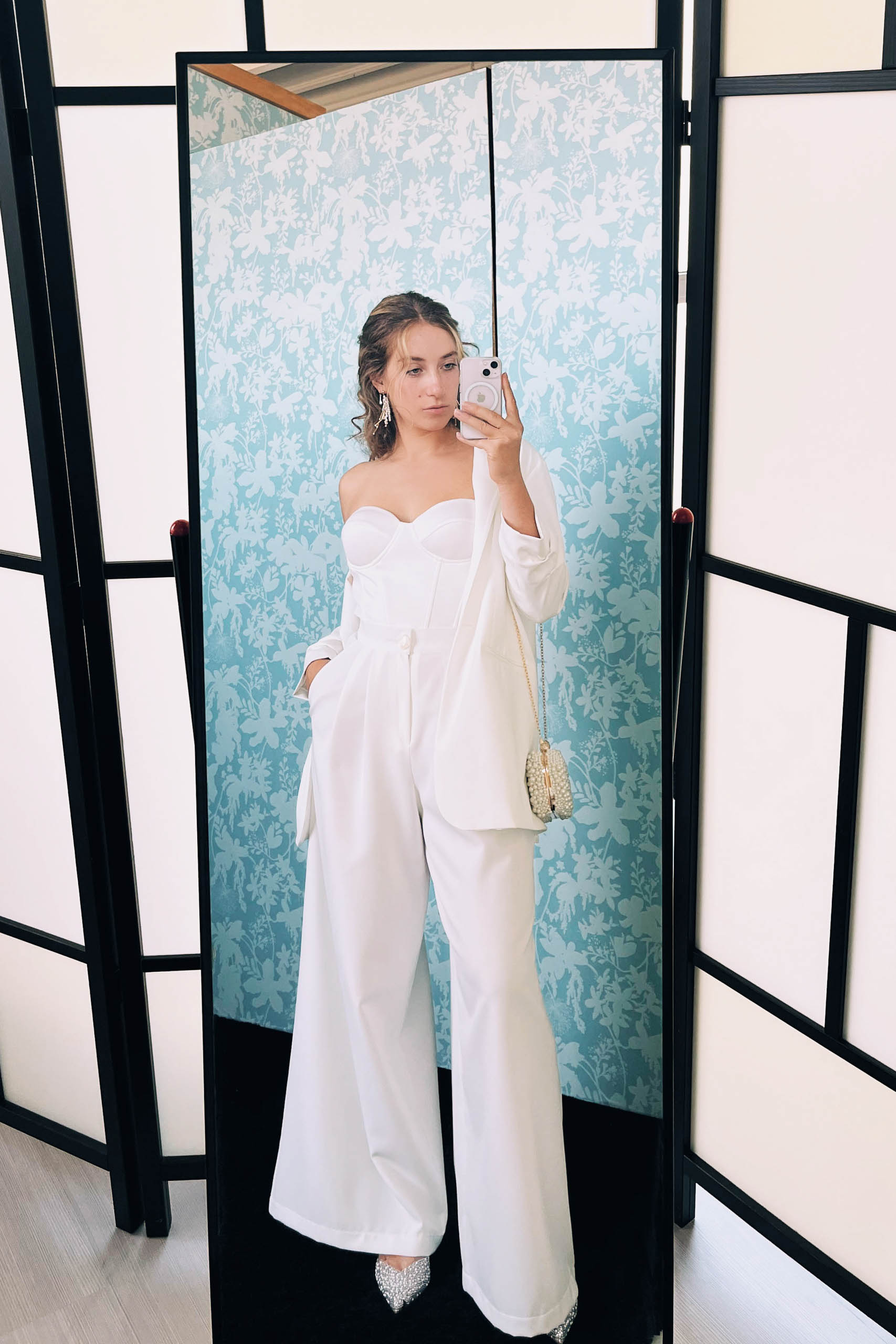 Hochzeitsjumpsuits und Hosen gehören zu KUESSdieBRAUT wie das Amen in der Kirche und dürfen bei unseren Brautmoden Trends 2026 selbstverständlich nicht fehlen.