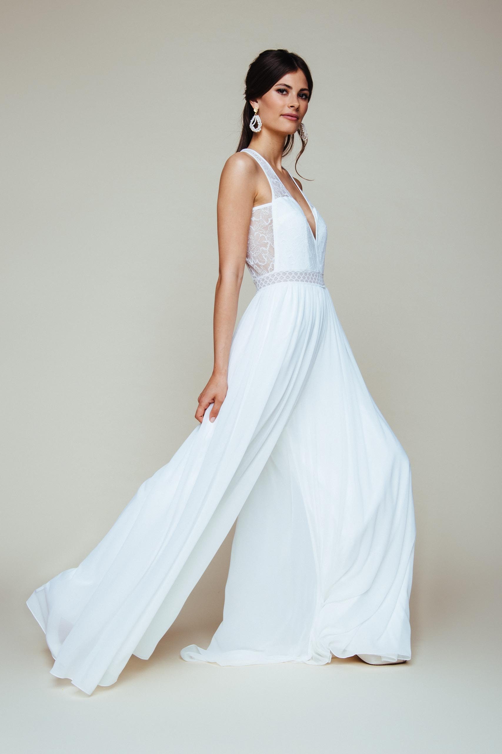 Brautoverall auf den zweiten Blick mit weitem Hosenrock-Bein im Palazzo Stil
