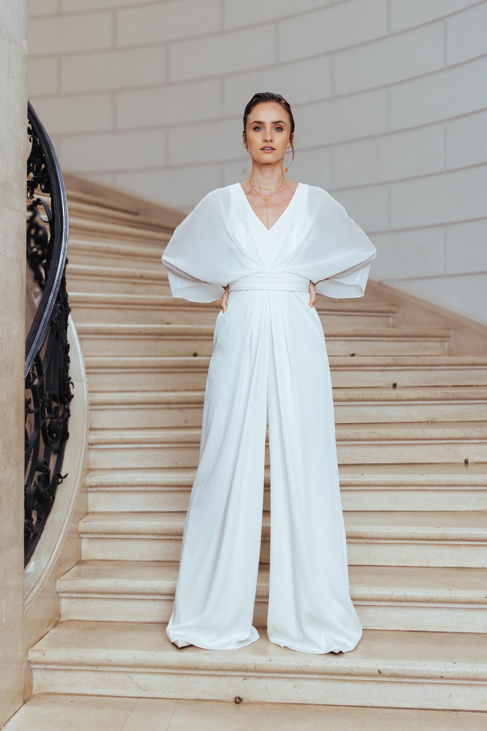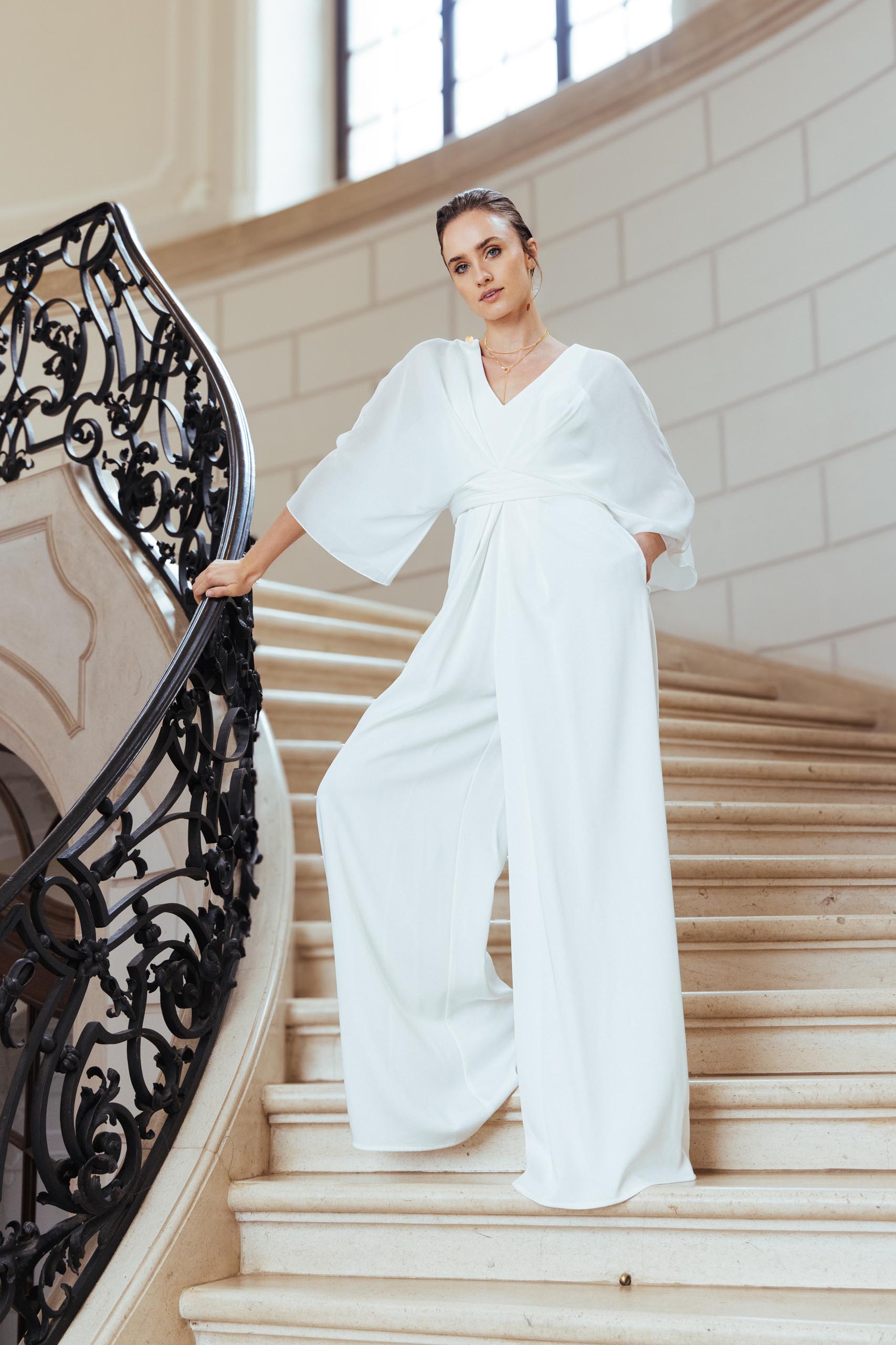 Hosenanzug zur Hochzeit – mit diesem Brautanzug mit Fledermausärmel hast du alles, was du brauchst!